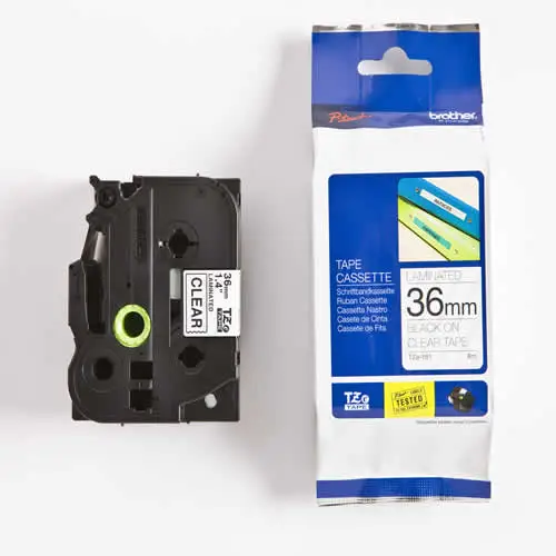 Brother P-Touch TZe-161 laminasyonlu etiketi, Brother etiketleme makineleriyle çalışmak üzere tasarlanmış yüksek kaliteli, dayanıklı bir etiket şerididir. Hem ev hem de ofis ayarlarında dosyaları, klasörleri, kabloları ve diğer birçok öğeyi etiketlemek için kullanılabilen çok yönlü bir etiket şerittir. Brother TZe-161, 36 mm genişliğinde ve 8 metre uzunluğunda şeffaf üstüne siyah bir etiket şerididir.