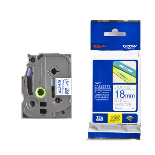 Brother P-Touch TZE-243 etiket şeridi, profesyonel etiketleme uygulamaları için geliştirilmiş dayanıklı ve yüksek kaliteli bir etiket çözümüdür. Beyaz zemin üzerine mavi baskı sunan bu etiket şeridi, yüksek kontrastlı yapısı sayesinde yazıların kolay okunmasını sağlar. Laminasyon teknolojisi ile üretilmiş olan TZE-243 şerit, hem iç mekân hem de dış mekân kullanımına uygun dayanıklı bir etiketleme ürünüdür.
